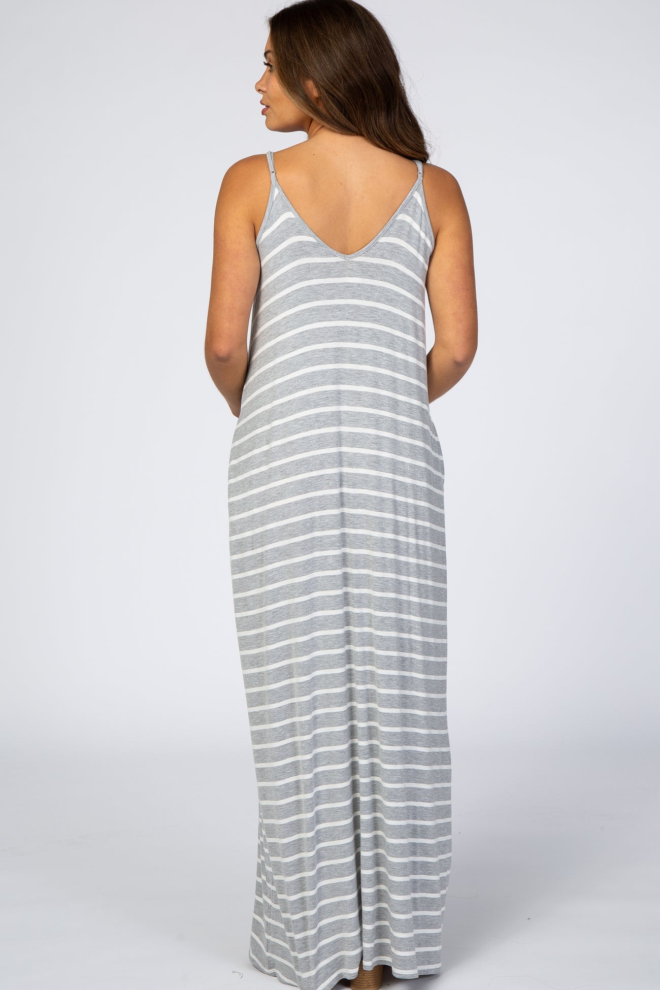 Heather Grey Striped Cami Strap Maternity Maxi Dress