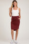 A basic skirt with side pockets and an elastic drawstring waist.