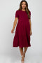 A solid ribbed short sleeve maternity plus dress with scoop neckline and tiered body.