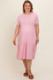 A solid ribbed short sleeve plus dress with scoop neckline and tiered body.
