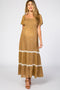 A floral print maternity maxi dress featuring a square neckline, short ruffle sleeves, a smocked elastic bust, an empire waist and lace trim.