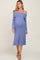 Blue Ribbed Knit Foldover Off Shoulder Maternity Midi Dress