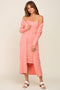 A solid ribbed cardigan and dress two piece set. Dress straps are not adjustable.