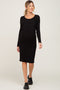 A brushed knit maternity nursing dress featuring a wrap bust, long sleeves and a rounded neckline.