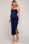Forest Green Mesh Ruched Side Slit Midi Dress