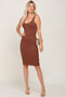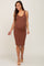 Brown Ribbed Scoop Neck Fitted Maternity Dress