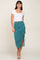 A floral midi skirt featuring a front slit and self-tie adjustable ruching.