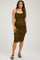 Olive Ruched Mesh Square Neck Maternity Midi Dress