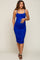 Royal Blue Ruched Mesh Square Neck Maternity Midi Dress