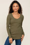 A solid rib knit top featuring a scoop neckline and long sleeves.