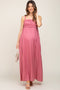 A solid hue maxi dress with a shirred bust and side pockets. Straps are adjustable with the button accents inside the back.