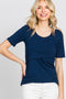 A ribbed knit nursing top featuring a rounded neckline, short sleeves, a wrap front and easy access for nursing.