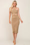 Taupe Side Cutout Halter Knit Maternity Midi Dress