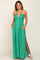 A printed maxi dress with a halter neckline, self tie cut out back detail and one side slit. Pocketed.
