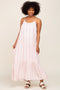A striped maxi featuring a scoop neckline, adjustable straps, and a gathered bottom tier. Dress is fully lined.