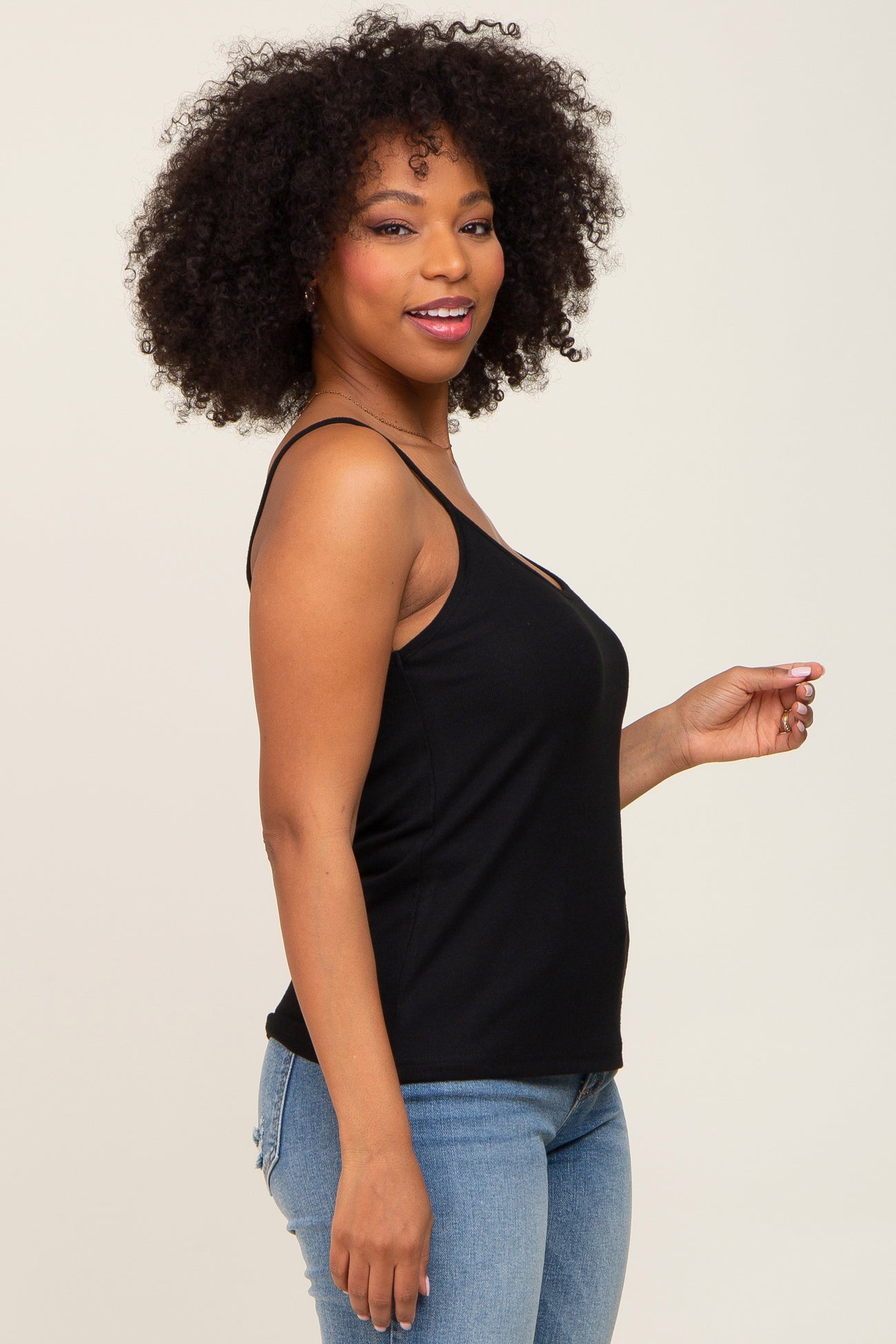 A basic ribbed tank top with a scoop neckline.