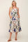 A floral printed lightweight midi dress featuring a square neckline, adjustable cami straps, a smocked elastic back, a ruffle hem and double lining.