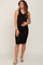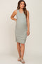 A ribbed sleeveless maternity dress featuring side ruching and a rounded neckline.