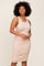 A ribbed sleeveless dress featuring side ruching and a rounded neckline.