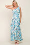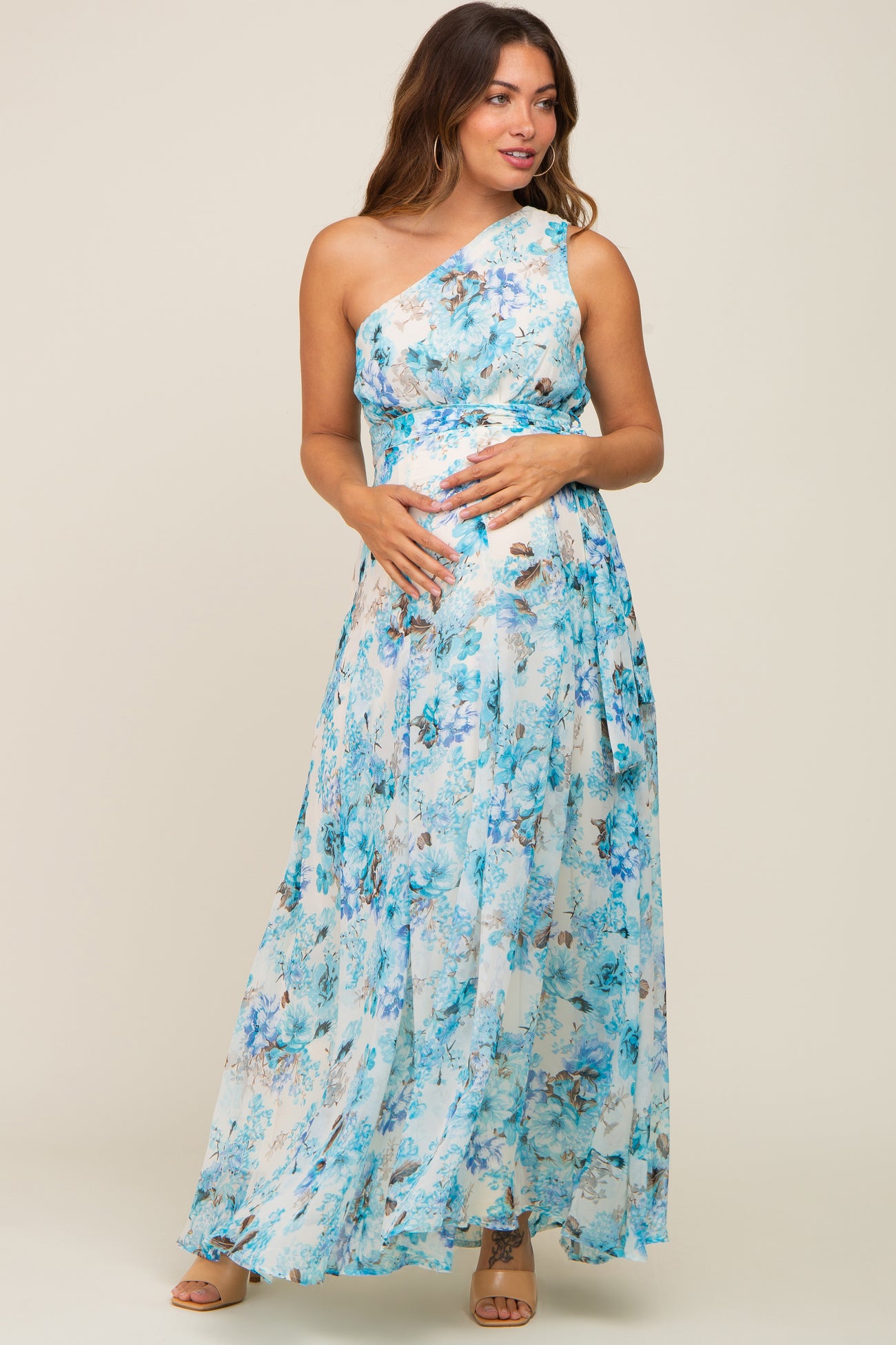 Blue Floral Chiffon One Shoulder Maternity Maxi Dress