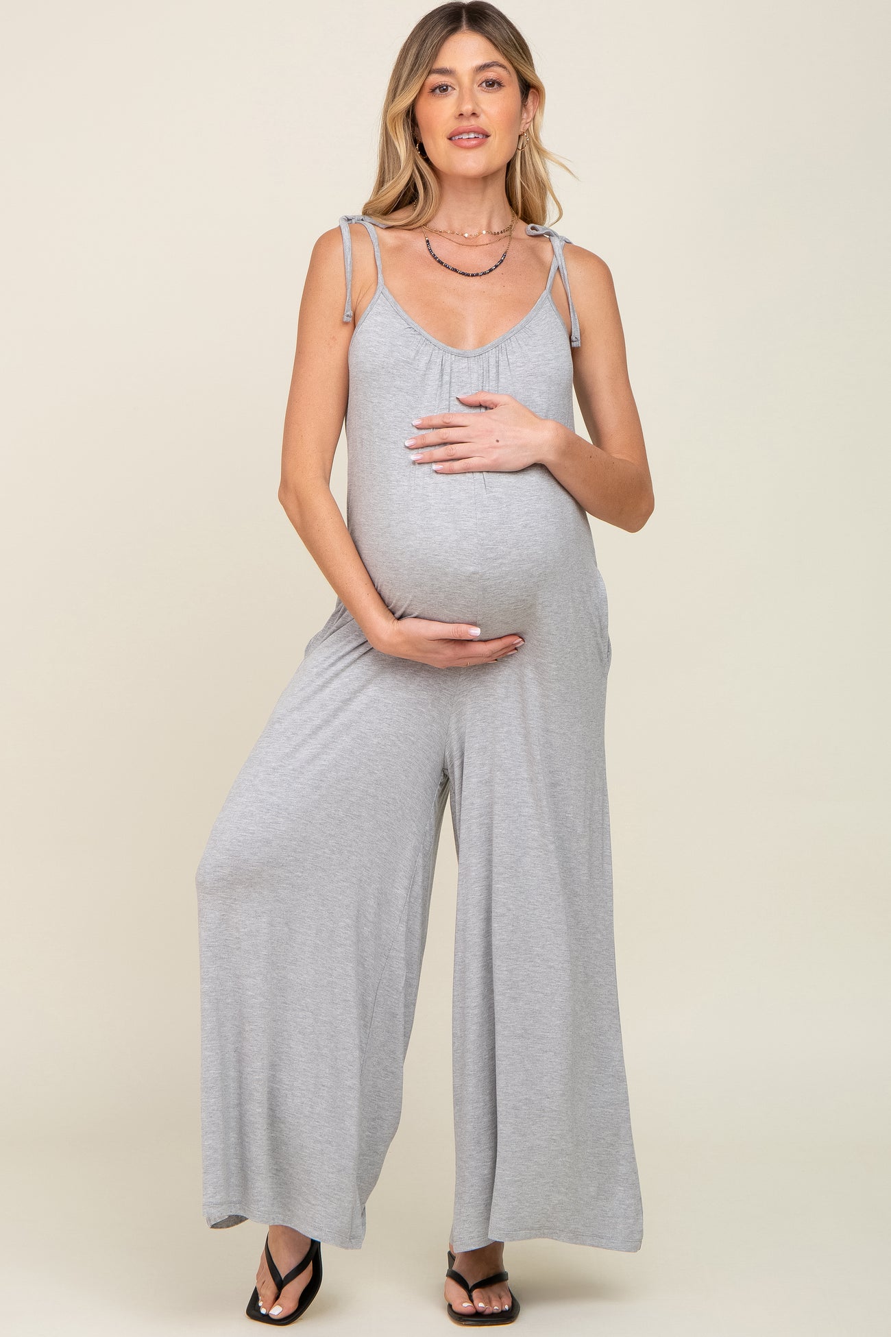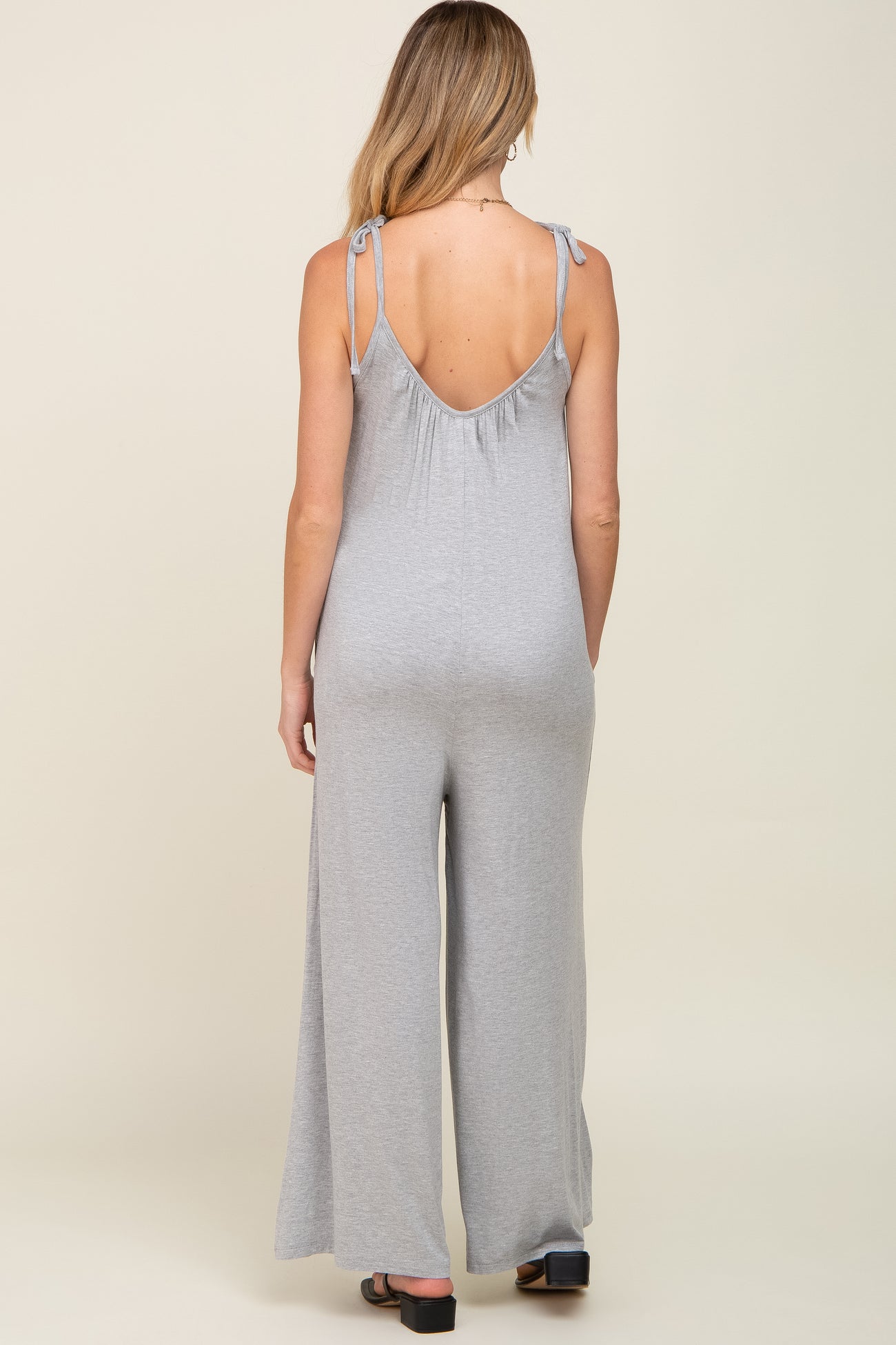 Heather Grey Shoulder Tie Soft Knit Maternity Jumpsuit