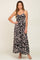 Black Palm Print Drawstring Front Tiered Maxi Dress