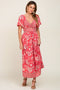 Details A floral maternity maxi that features short flounce sleeves, a v-neckline, a front twist, a smocked back, and a front cutout. Content + Care