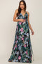 Black Tropical Floral Chiffon Wrap Front Maxi Dress