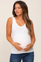 A solid ribbed maternity tank top with a scoop neckline.