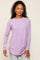 A heathered top featuring long sleeves, a curved hem and a rounded neckline.