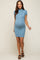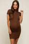 A knit fitted maternity dress featuring a mock neckline and shirt fitted sleeves.