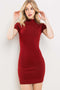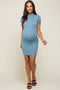 A knit fitted maternity dress featuring a mock neckline and shirt fitted sleeves.