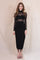 Black Mock Neck Mesh Cut Out Thigh Slit Ankle Dress