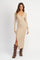 Beige Ribbed Fitted Long Sleeve Maxi Dress