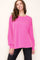 A ribbed top with long sleeves, a rounded neckline, long drop shoulder sleeves, and side slits at the hem.