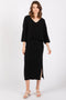 A knit skirt set featuring a cropped top with a v-neckline and dropped shoulder long sleeves and a midi skirt with an elastic waistband.