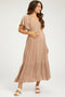 Orange Smocked Flutter Sleeve Midi Dress