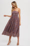 Purple Paisley Halter Smocked Maternity Midi Dress