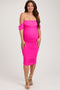 Light Pink Off Shoulder Sleeveless Ruched Mesh Maternity Midi Dress