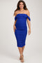 Turquoise Off Shoulder Sleeveless Ruched Mesh Maternity Midi Dress