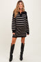 Cozy meets chic in our Mocha Striped Knit Polo Sweater Dress. Crafted from soft, breathable knit fabric, this dress features timeless mocha and cream horizontal stripes for a stylish, casual look. The relaxed fit, long sleeves, and classic polo collar with a subtle V-neck add effortless sophistication. Perfect for layering or wearing on its own, this versatile dress pairs beautifully with boots or sneakers. Stay comfortable and fashionable all season long—your new go-to sweater dress for laid-back days or casual outings. Easy care and endlessly wearable!