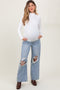 Beige Brushed Ribbed Knit Maternity Pullover