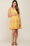 A printed chiffon tiered midi dress with a v-neckline, flutter sleeves and ruffle accents. Dress is partially lined. Sleeves and back are semi sheer.