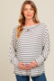 Beige Dolman Short Sleeve Side Slit Maternity Sweater Top
