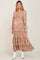 Beige Floral Cutout Smocked Tiered Maternity Maxi Dress