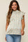 A floral print maternity short sleeve blouse with a smocked neck and flutter cap sleeves.