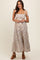 Floral smoked bodice maternity dress with side pockets, adjustable bow tie straps, and tiered skirt. Dress is lined.
