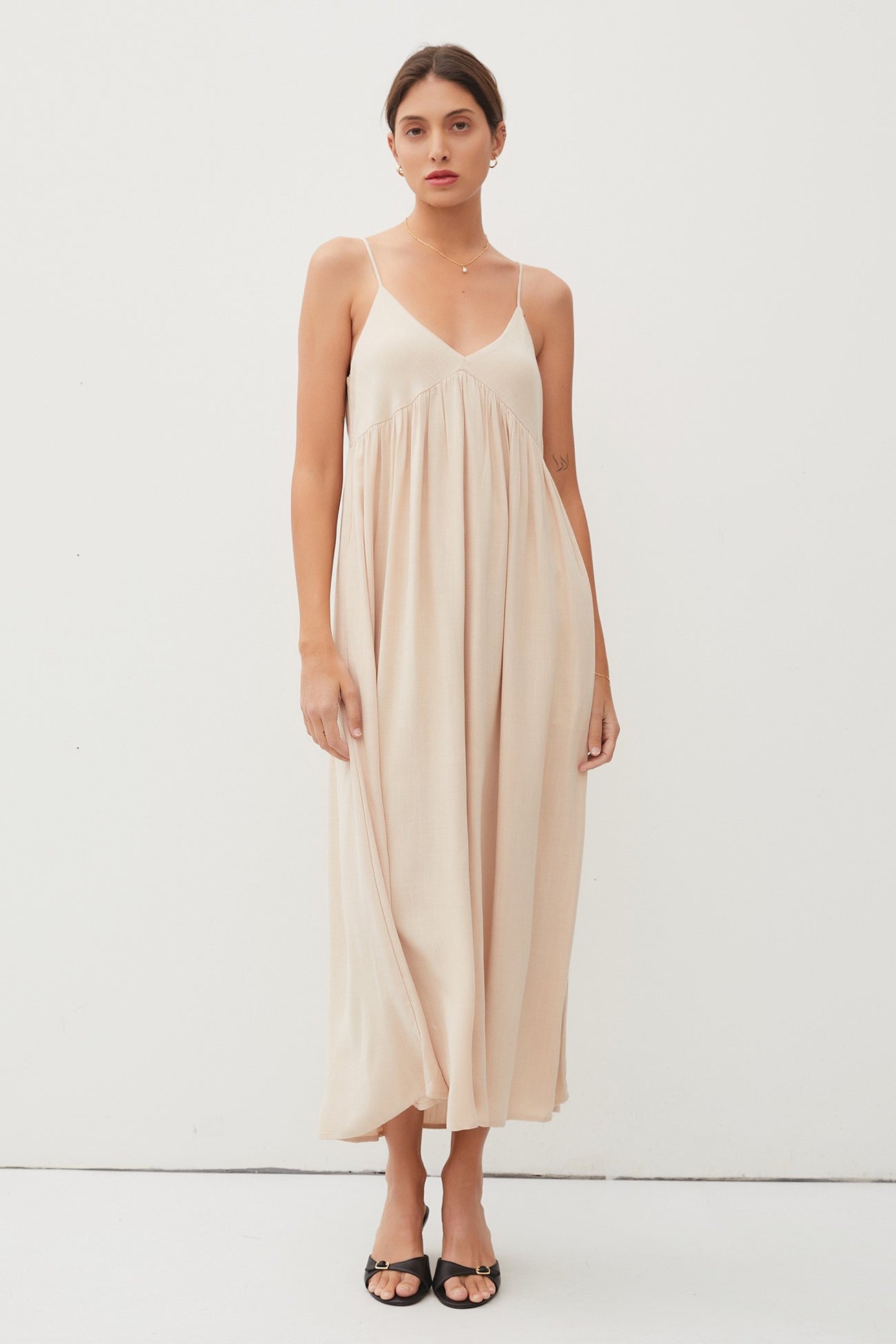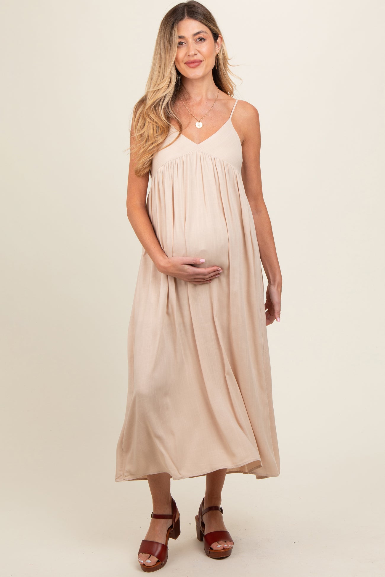 Beige Flowy Maternity Maxi Dress
