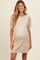 Beige Knit Beaded Floral Mesh Sleeve Maternity Mini Dress