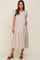 Beige Linen Short Sleeve Tiered Back Tie Maternity Midi Dress